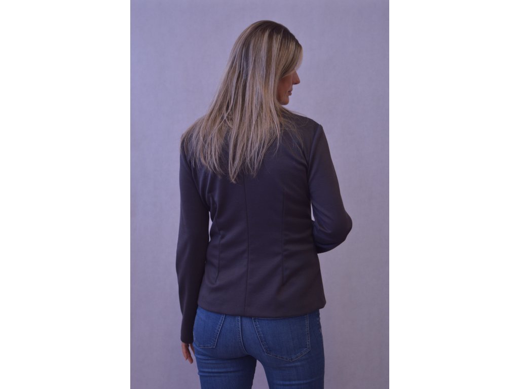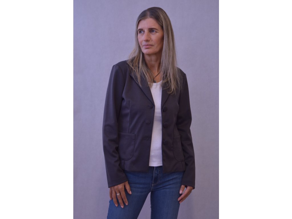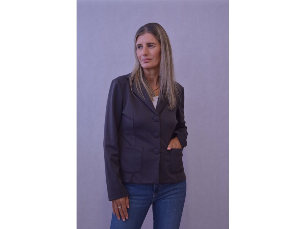 Je to klasický nepodšitý kabátik, kde predné diely zdobia vrecká.