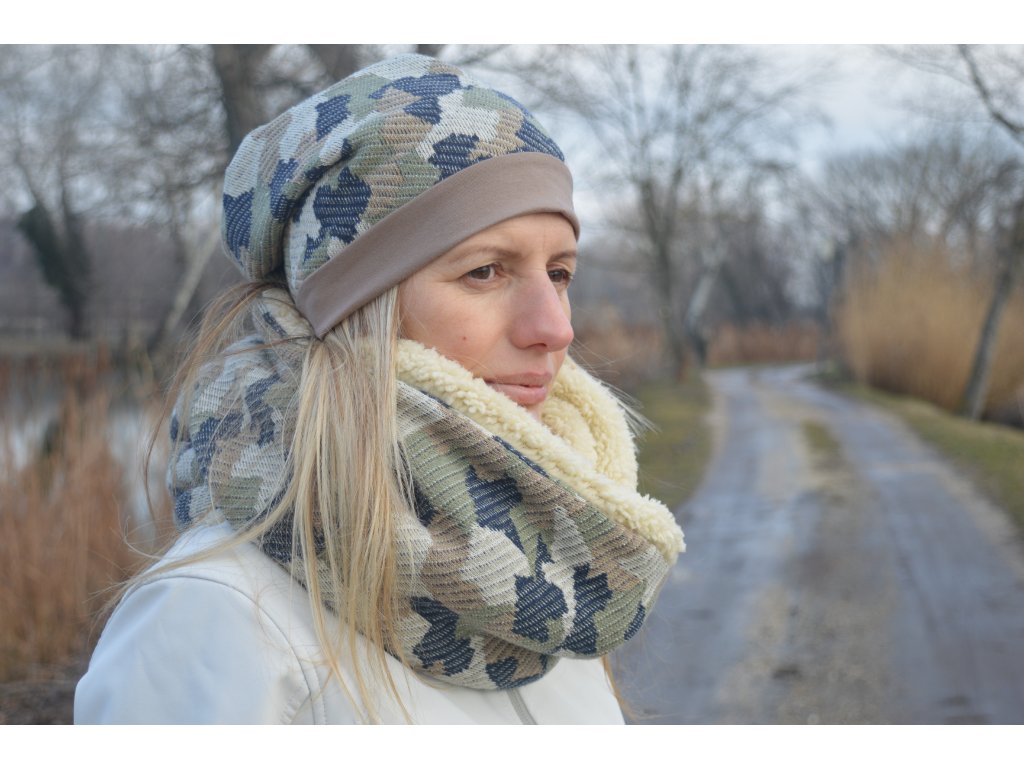 Módne doplnky Šále Set Nákrčník Army + UNI zimná čiapka